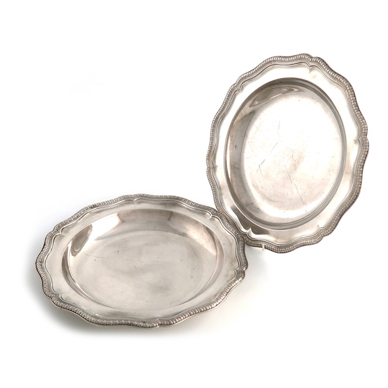 shaped circular form, ovolo border, diameter 29cm, total approx. weight 64.6oz. (2)