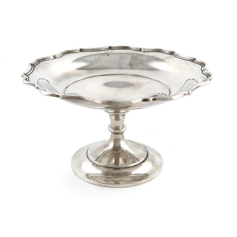 circular form, moulded border, on a raised circular foot, diameter 21cm, approx. weight 11.9oz.