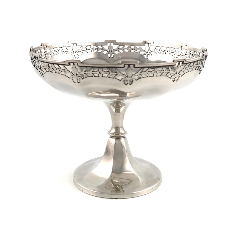 circular shaped bowl, with a pierced foliate border and shaped rim, on a raised circular foot, diameter 18.3cm, approx. weight 13.9oz.