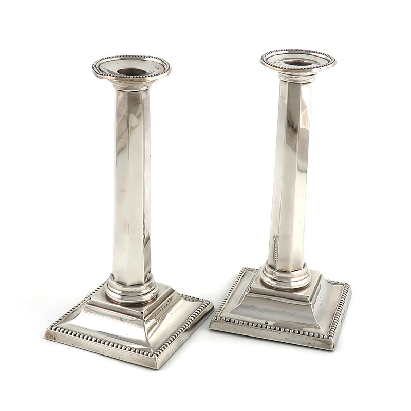 A pair of silver candlesticks,