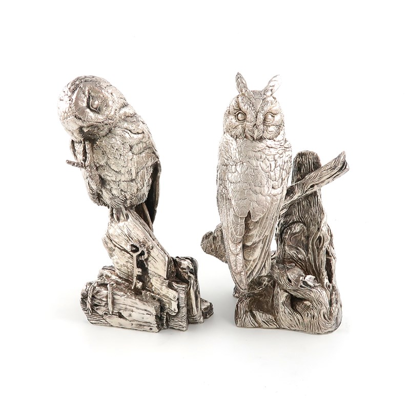 Two modern silver models of owls