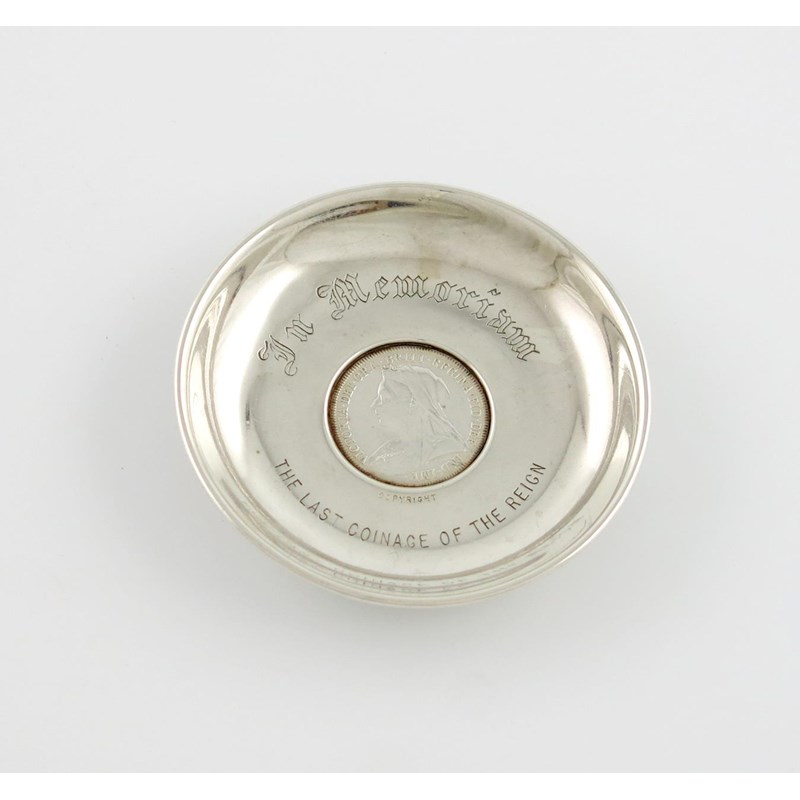A late-Victorian commemorative silver coin set dish