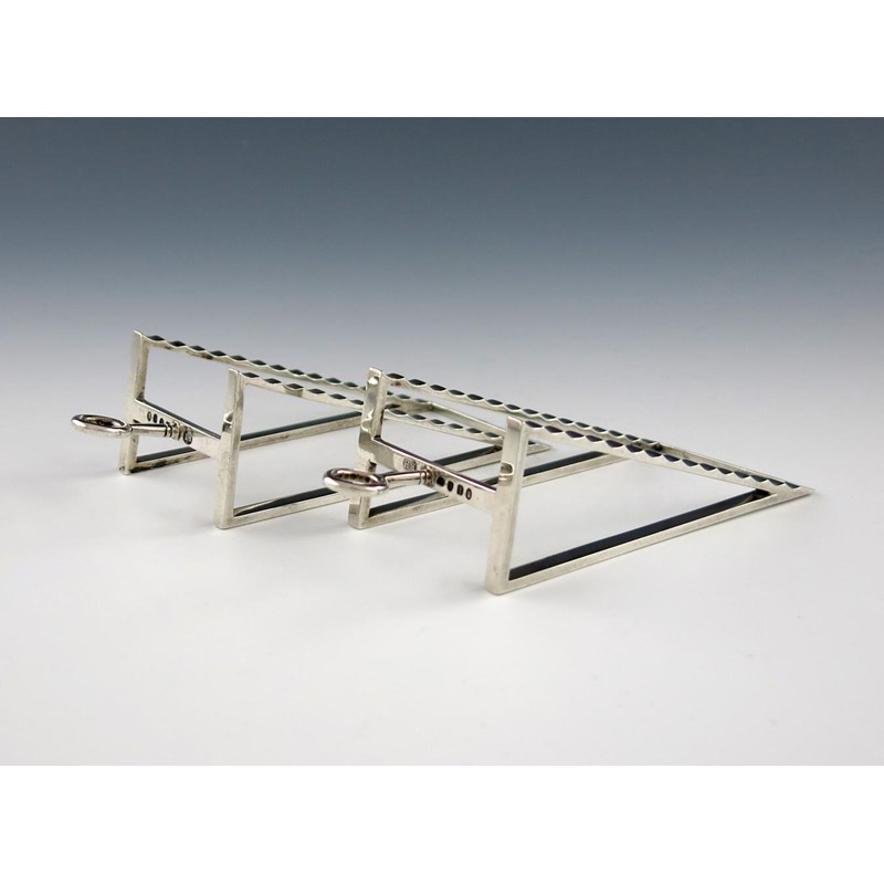 rectangular form, with ring handles, engraved with a crest, length 14.3cm, approx. weight 6.5oz. (2)