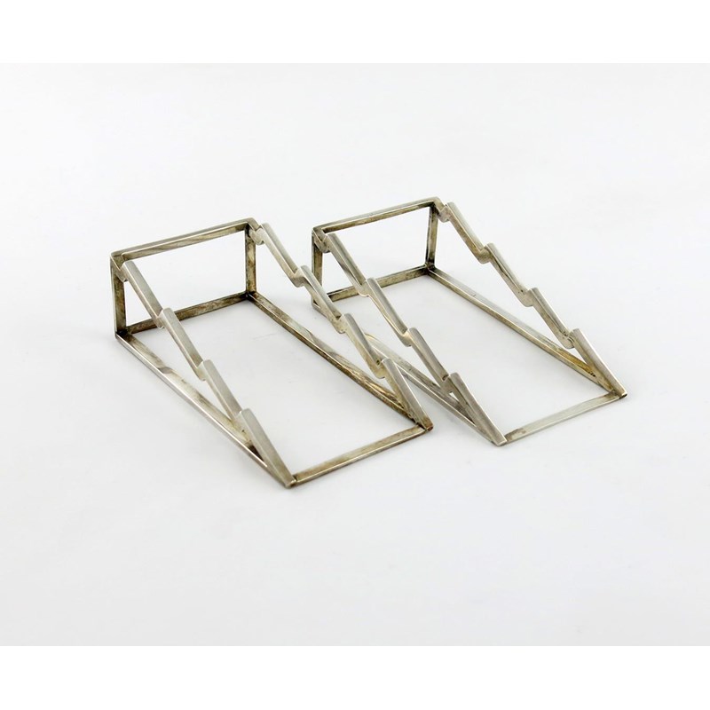 rectangular form, zig-zag border, the bases inscribed, 'For the second best pen of South Down Shearling Ewes shewn at Swafham, in July 1804', length 11cm, approx. weight 4.9oz. (2)