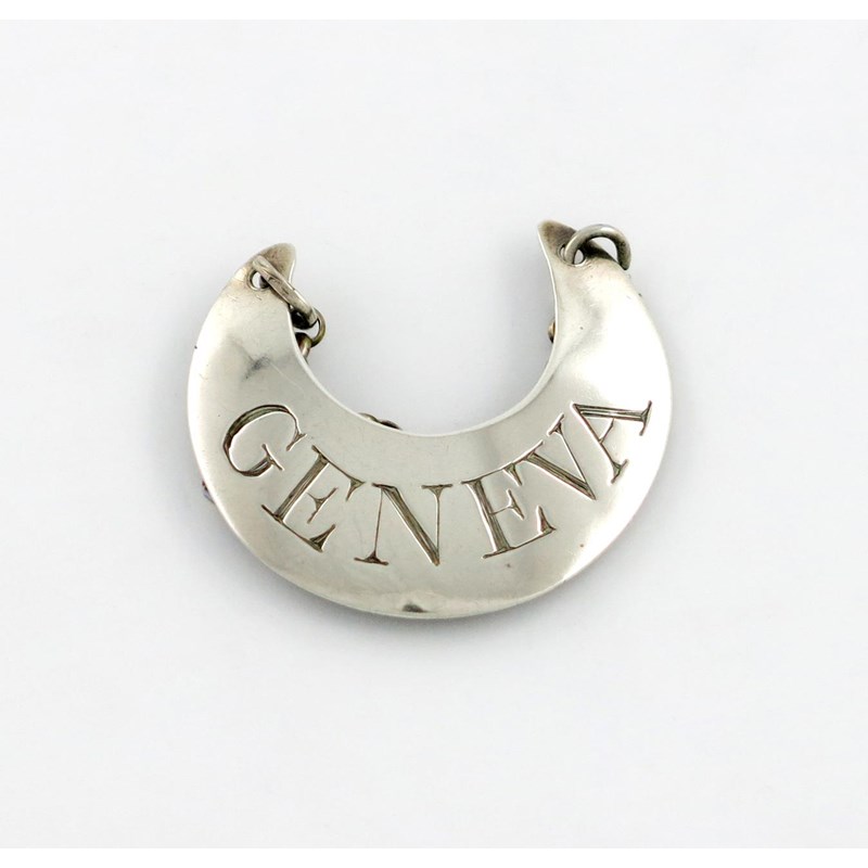 crescent form, incised 'GENEVA', length 3.6cm, approx. weight 0.2oz