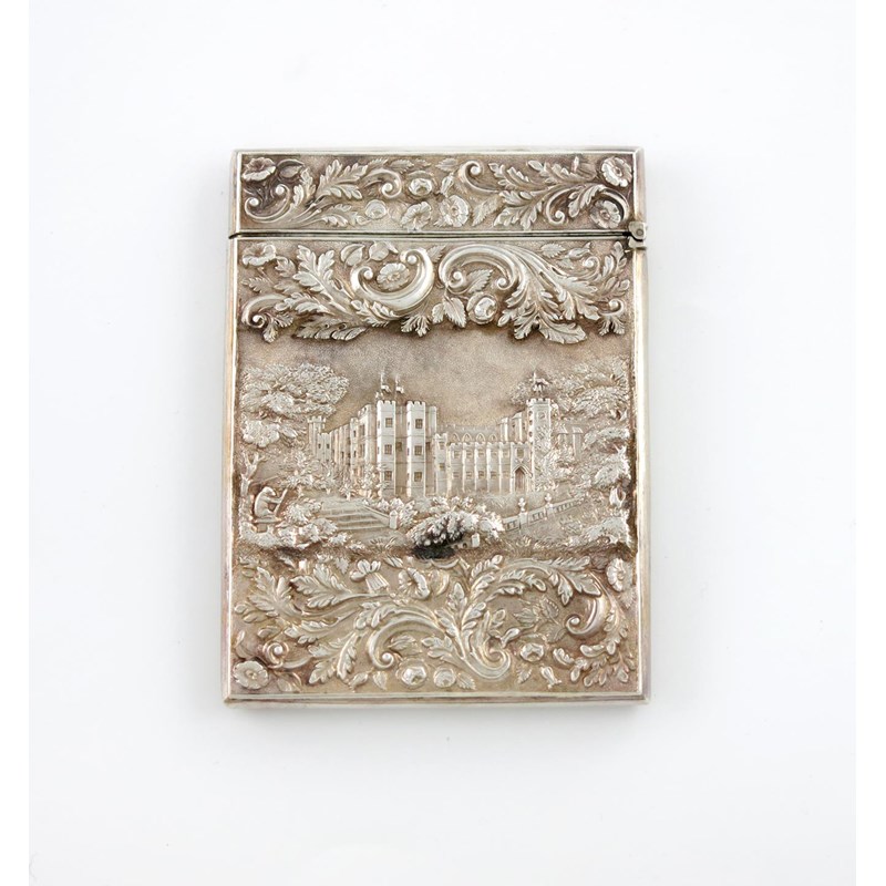 A Victorian silver 'castle-top' card case, Windsor Castle and Kenilworth Castle,