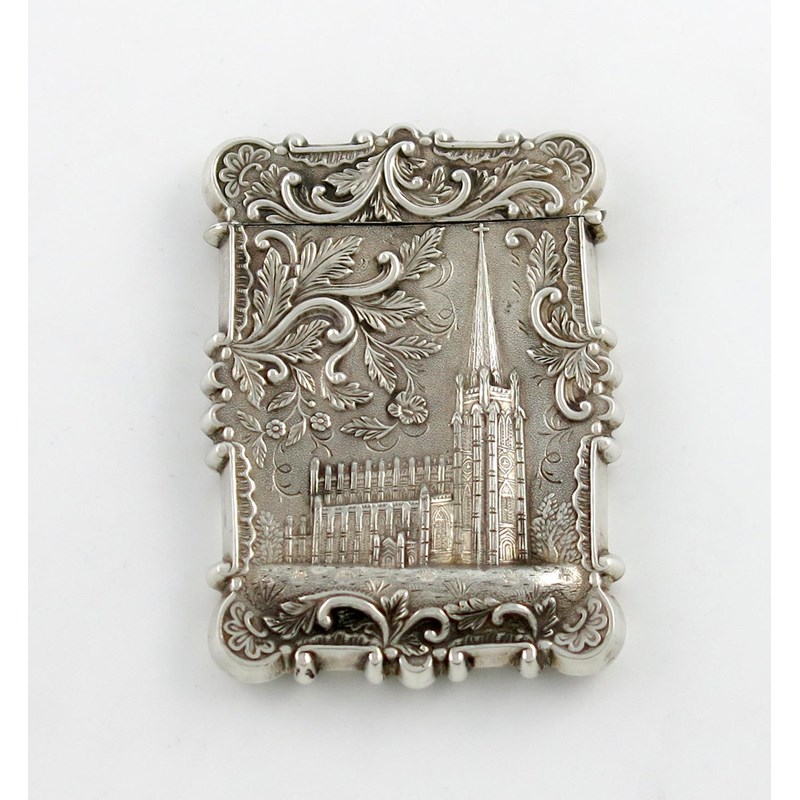 A 19th century American silver card case, Holy Trinity Church, Wall St. New York,