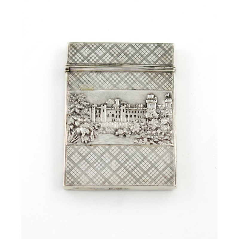 A Victorian silver 'castle-top' card case, Warwick Castle and Kenilworth Castle,