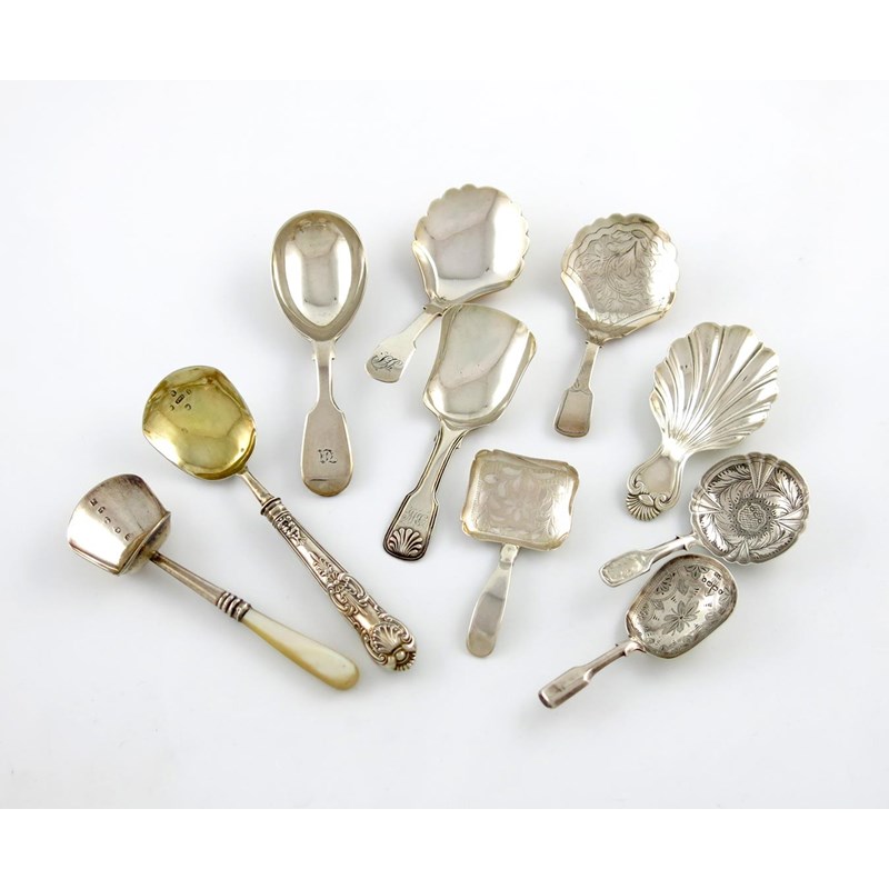 A collection of ten antique silver caddy spoons