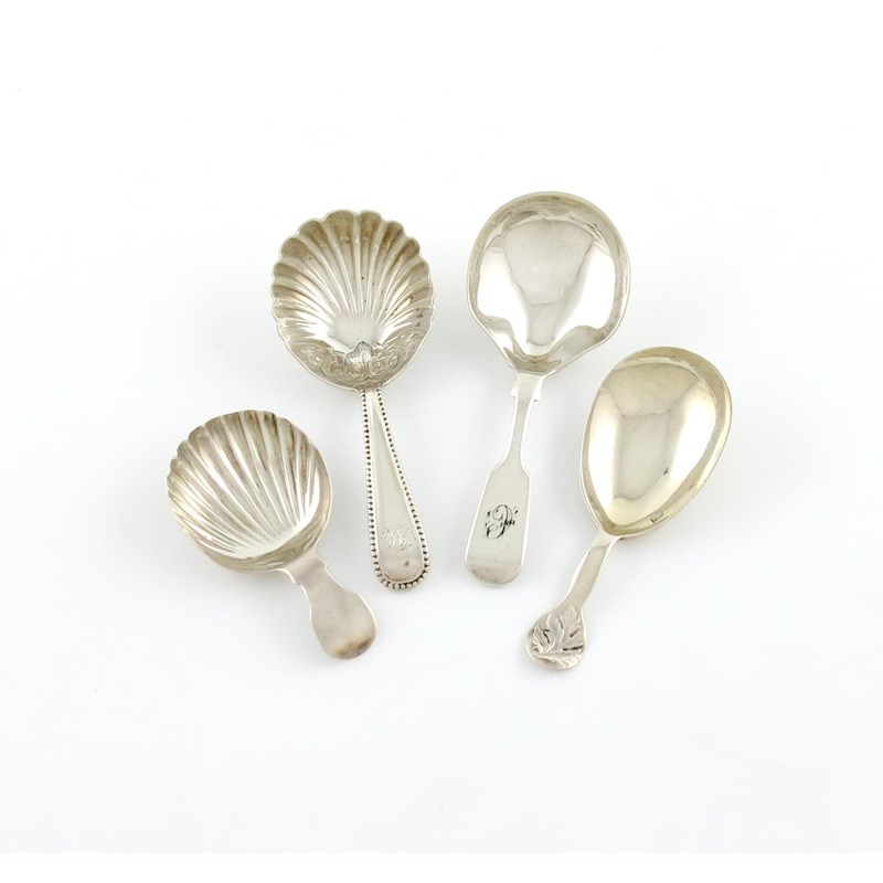 comprising: a Beaded pattern one, by James and Josiah Williams, of Bristol, 1874, one with a leaf terminal, one by Joseph Hicks and one by Robert Williams and Sons, of Bristol, approx. total weight 1.9oz. (4)