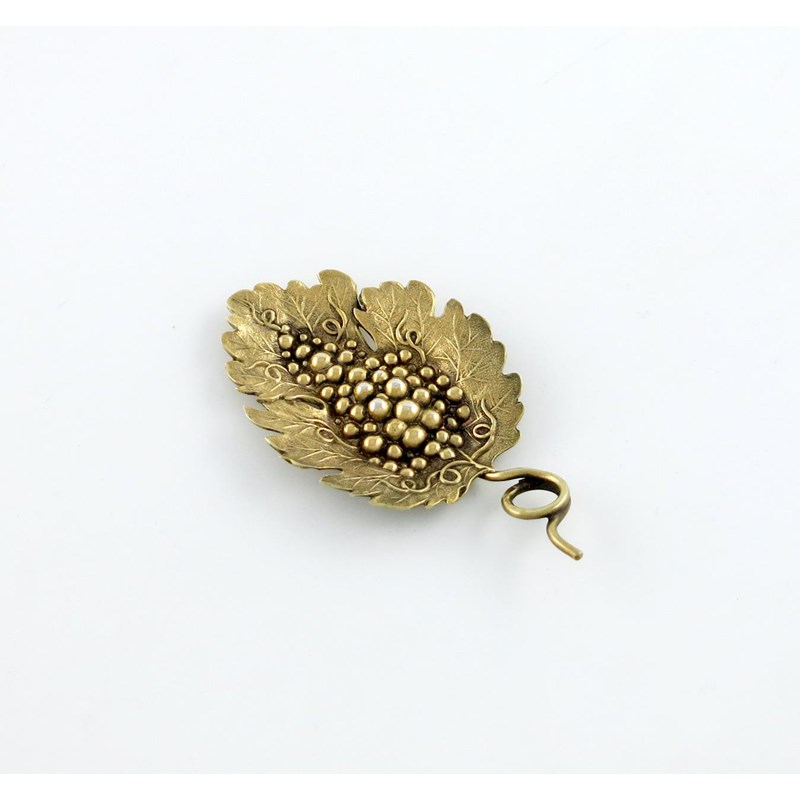 leaf form, the centre embossed with a bunch of grapes, tendril ring handle, length 7.5cm, approx. weight 0.2oz.