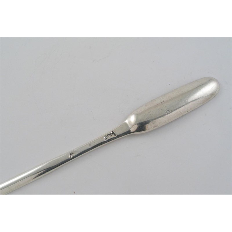 A Queen Anne marrow scoop, initialled "I.B", by Benjamin Watts, London c.1705 (date letter worn), 1.5oz.