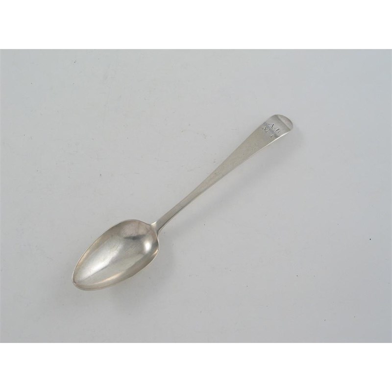 A George III Irish tablespoon, with a pointed end, initialled "AB" over "MI", by J. Pittar, Dublin 1790, 2.4oz.