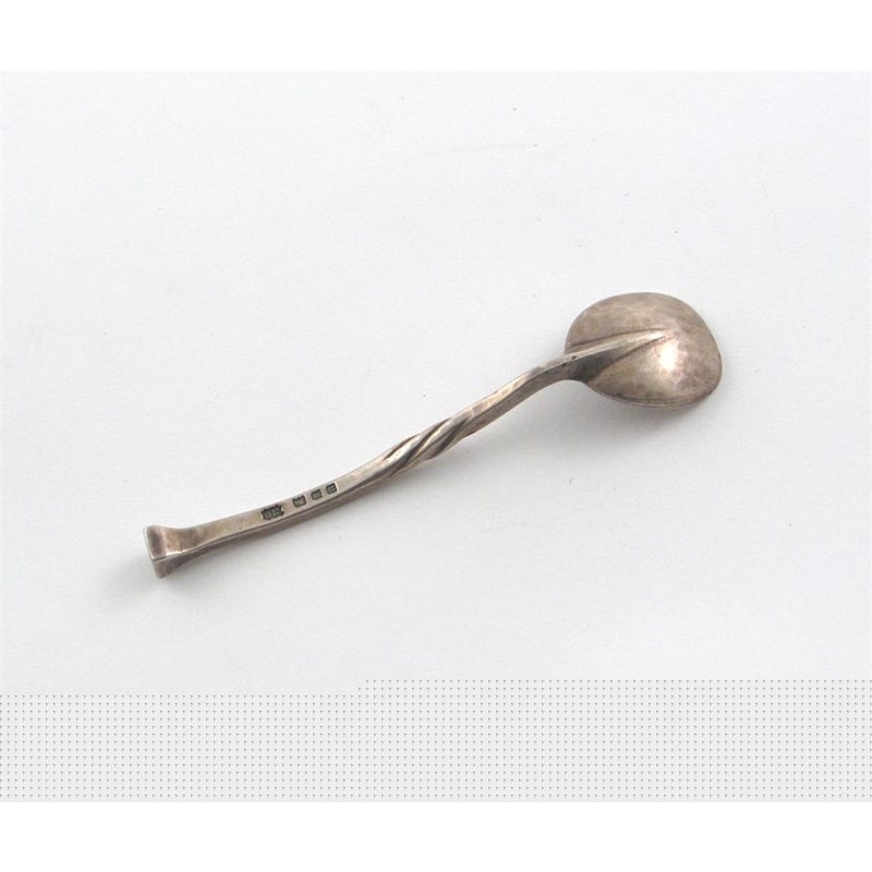By Omar Ramsden: a seal top condiment spoon, with a wrythen stem, London 1928, 3.4in (8.6cm), 0.25oz.