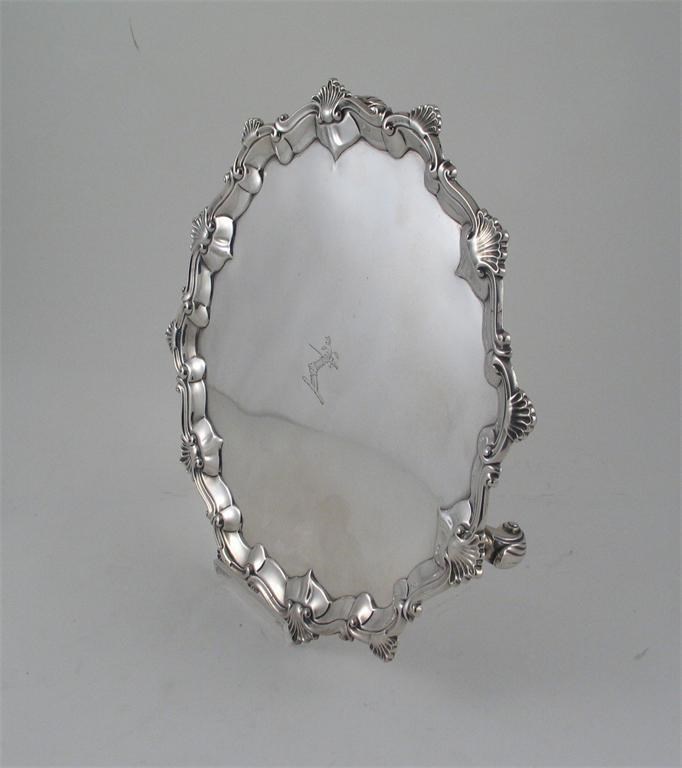 A George III salver of shaped circular outline with a shell and scroll border, crested, by Ebenezer Coker, London 1766, 11in (28cm) diameter, 24oz.