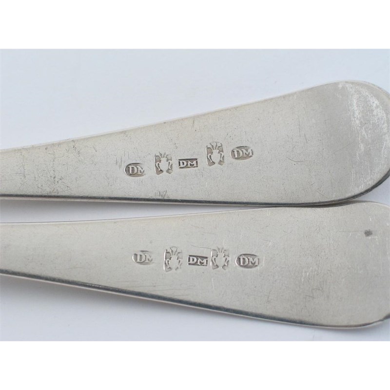 A pair of George III Scottish provincial tablespoons, initialled "JEL" and numbered "8" & "9", by David Manson, Dundee (DM [thice], pot of lilies [twice]), c.1810, 4oz. (2)