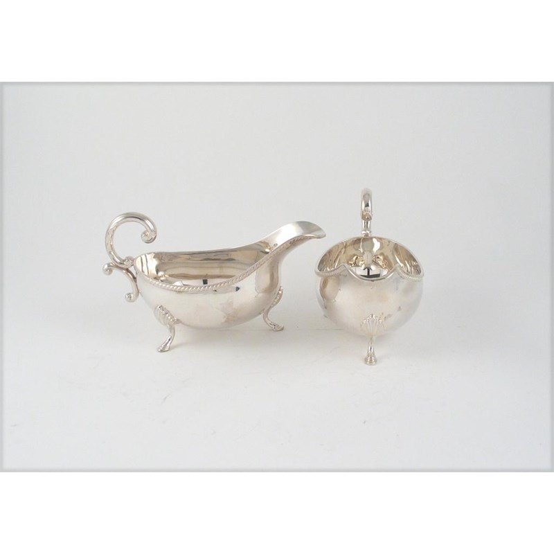 A pair of modern oval sauceboats, on three feet with gadrooned borders, and flying scroll handles, London 1971/72, 13oz. (2)