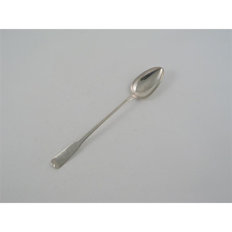 A George III Scottish fiddle basting or hash spoon, initialled "W", probably by William Hannay of Paisley (Edinburgh, hallmarks for 1811), 12.9 in (32.6cm), 3oz.