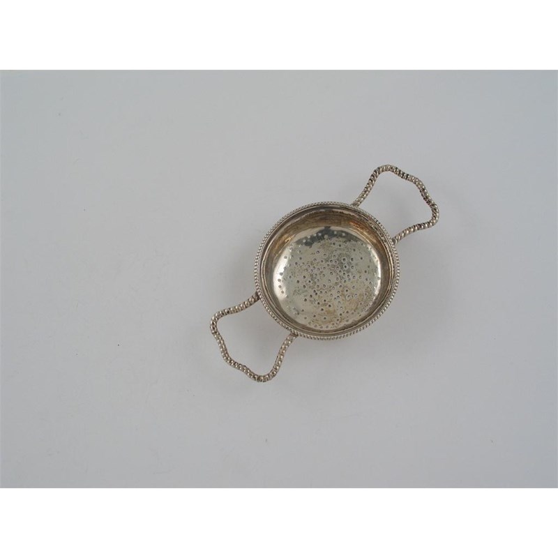 A George III strainer, with two rope twist handles, maker's mark worn, London 1773, 5.5in (14cm) wide, 1.5oz.