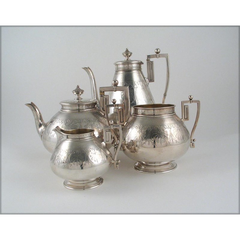 A Victorian oviform four piece tea and coffee service, engraved with anthemion-like friezes around the upper bodies, by Messrs W & J Barnard, London 1877/78, 66oz. (4)