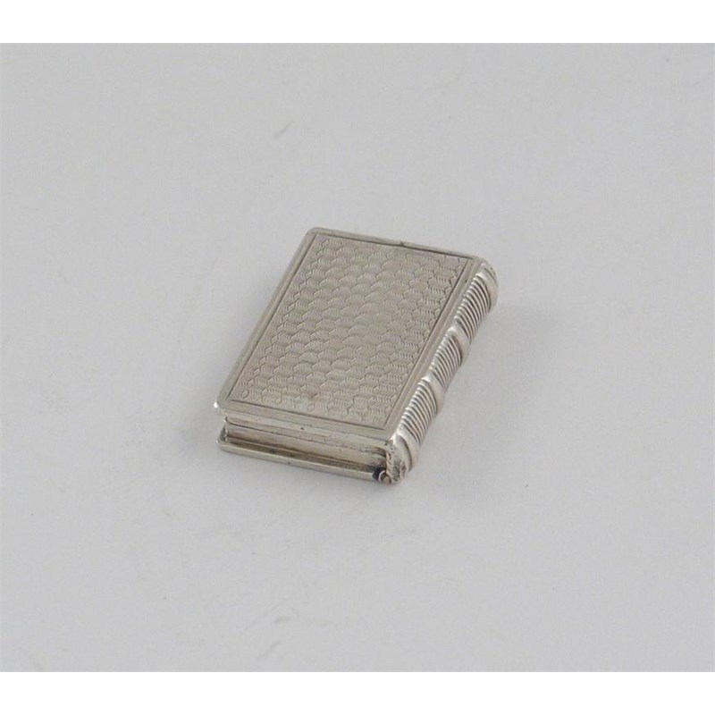 A William IV small book vinaigrette, with engine turned decoration, by Taylor & Perry, Birmingham 1831, 1in (2.6cm) long, 0.3oz.