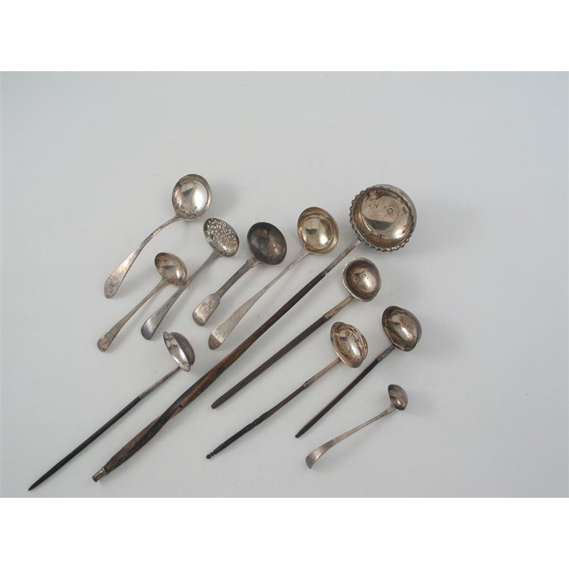 Eleven assorted ladles of mixed designs, maker's and dates (including Scottish and one Irish provincial example). (11)