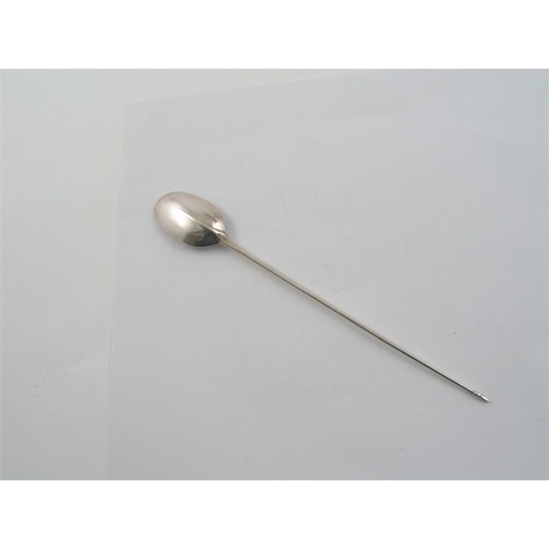 A George II masking or unpierced mote spoon, with a rattail, scratched "IS", maker's mark only "IB", probably Scottish c.1740, 7in (17.8cm), 0.3oz.