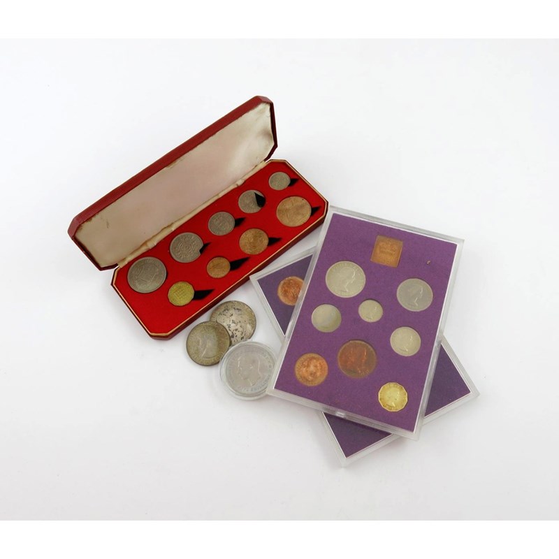 A small quantity of Georgian and more recent copper coins, poor to fine; with a much larger quantity of modern coinage, including Elizabeth II, 1953 currency set of 9 coins, in fitted case; Guernsey, Proof Set of 6 coins, 1971; Proof Crowns, 1964, Channel Islands; collector's album with nickel-brass Threepences; Bermuda, 1977; Year Sets, 1970, 1971, 'plastic' sets, 1971; Crowns, including Channel Islands; Whitman Albums, Halfcrowns from George V, Shillings and Sixpences, many varied state, but many uncirculated included. (qty)