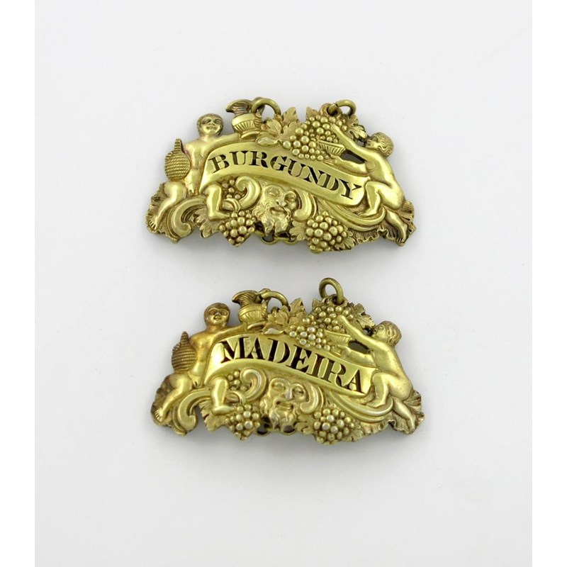 with Bacchanalian cherubs, masks and bunches of grapes, pierced 'BURGUNDY' and 'MADEIRA', length 5.9cm, approx. weight 1.9oz. (2)