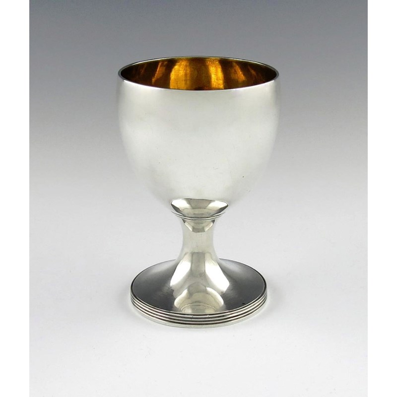 plain urn form, gilded bowl, on a raised circular foot with a reeded border, height 12.5cm, approx. weight 6oz.