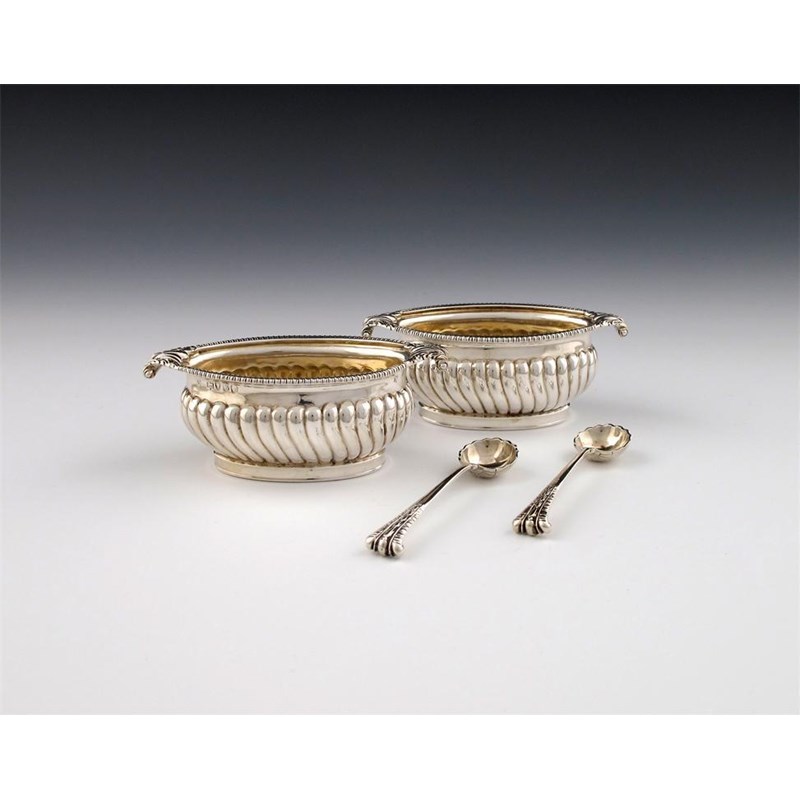 oval form, part-fluted decoration, foliate handles, gilded bowls, the spoons of Onslow form, length 10.5cm, approx. weight 6oz. (4)