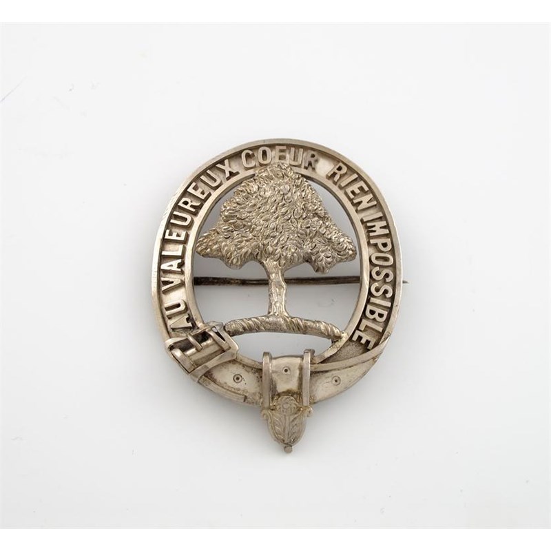 An oval Clan Badge of the Messervy family of Jersey, a cherry-tree proper, motto around in Garter, AU VALEUREUX COEUR RIEN IMPOSSIBLE [To the valiant heart nothing is impossible], 65 x 50mm, c. 1860-1880.