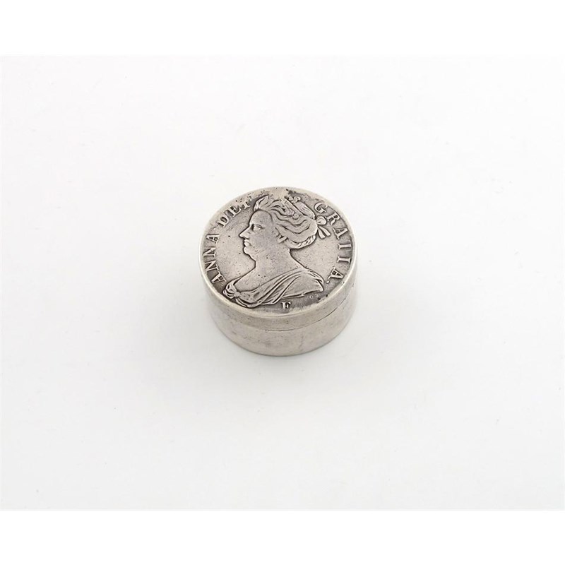 circular form, the pull-off cover set with a Queen Anne post-Union Crown, 1707 E, circular form, 3.8cm, approx. weight 1.6oz.