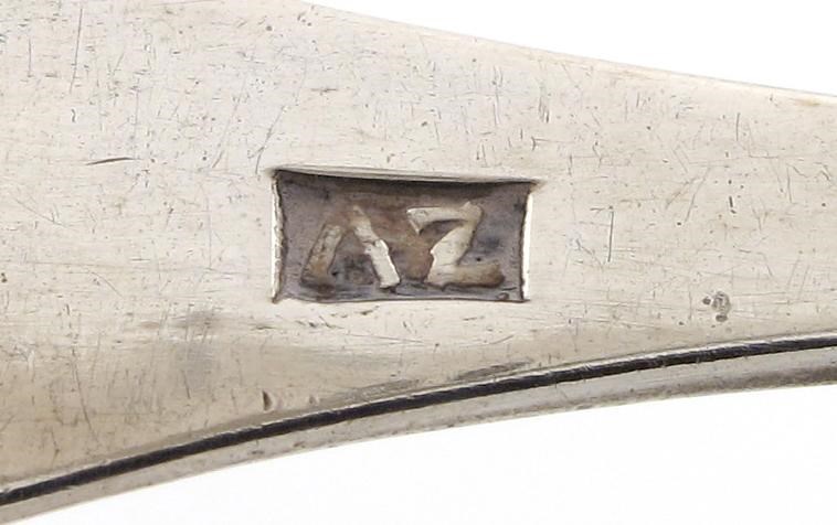 shell bowls engraved foliate decoration, the terminal with a monogram, approx. weight 1.5oz.