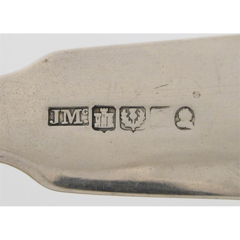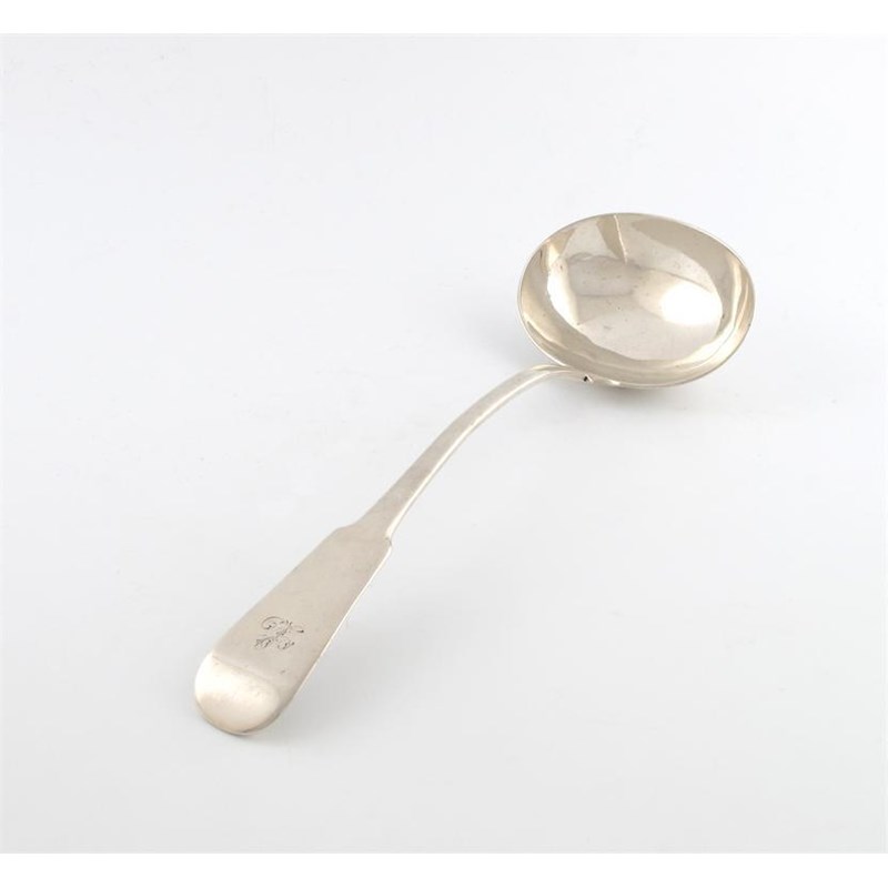 A William IV Scottish silver Fiddle pattern soup ladle,
