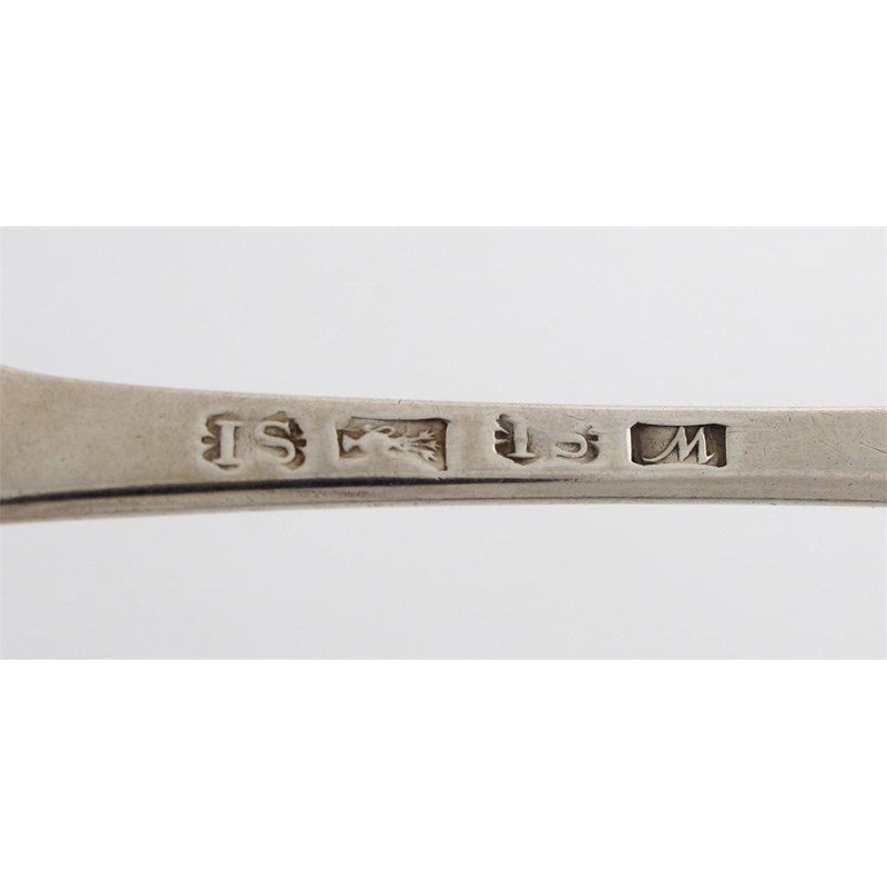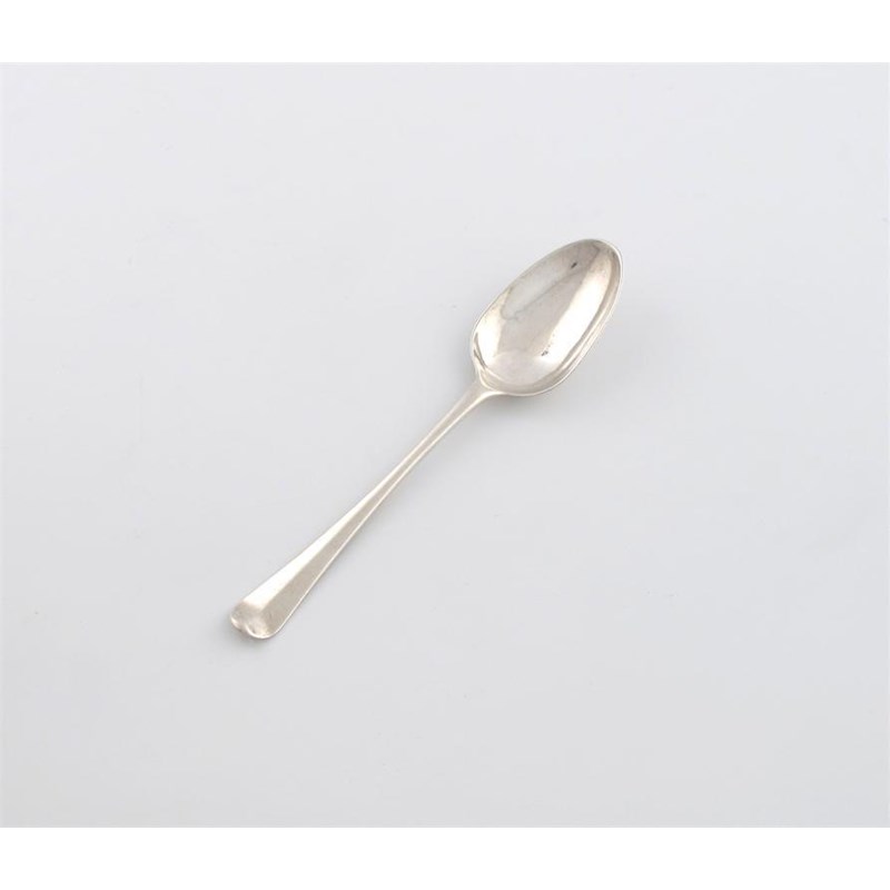 A mid 18th century Scottish provincial silver Hanoverian pattern dessert spoon,