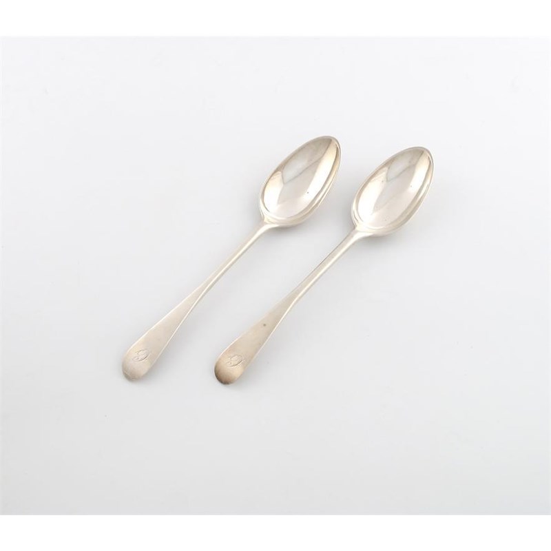 A mid 18th century pair of Scottish silver early old English pattern tablespoons