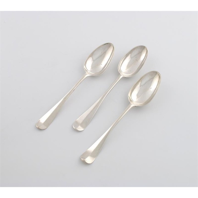 A small collection of three George III Scottish silver Hanoverian pattern tablespoons