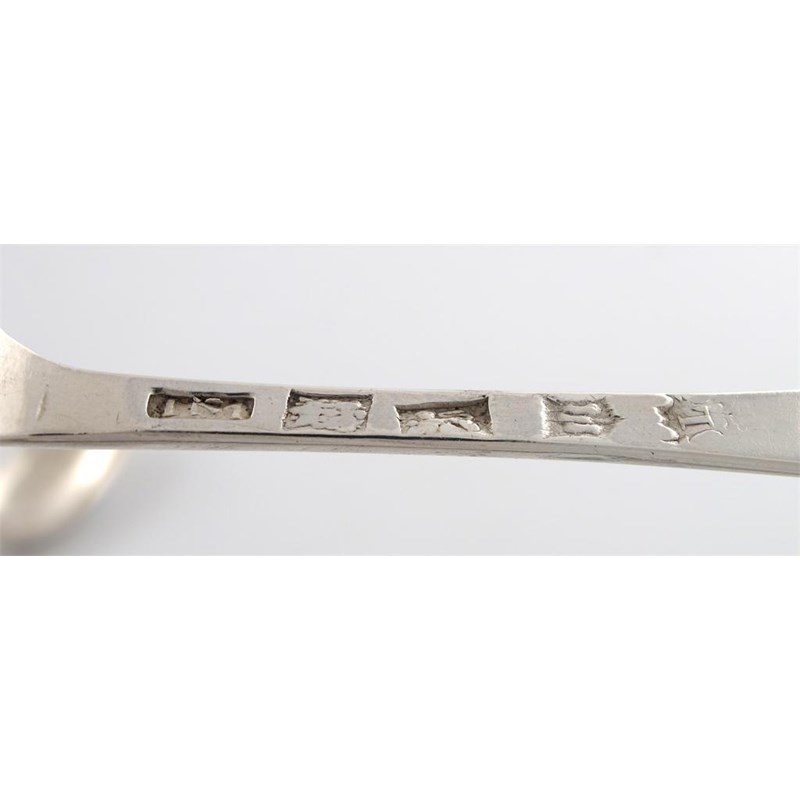 oval bowl with a plain rat-tail, the reverse of the terminal scratch initialled 'AS' over 'HS' '1726', length 20cm, plus a George II provincial silver Hanoverian pattern tablespoon, Exeter 1759, maker's mark IM, possibly for John Murch, the reverse of the bowl with a shell heel, length 20.2cm, approx. weight 2.8cm. (2)