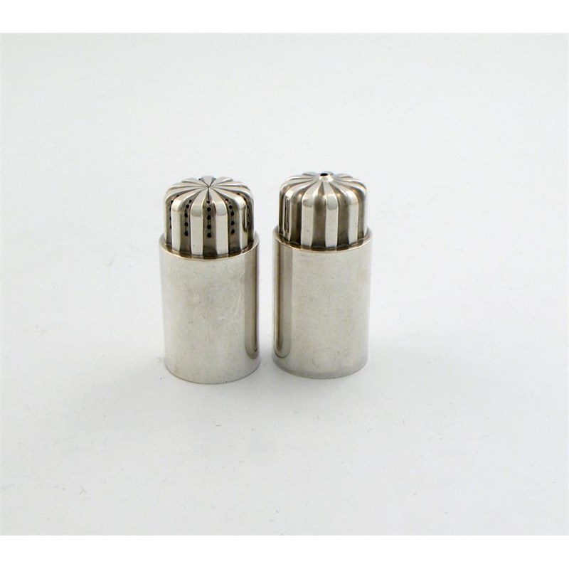 By Georg Jensen, a pair of Danish silver Bernadotte pattern salt and pepper pots,