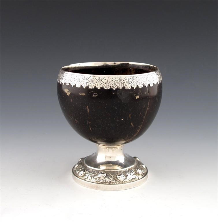 A George IV provincial silver mounted coconut cup,