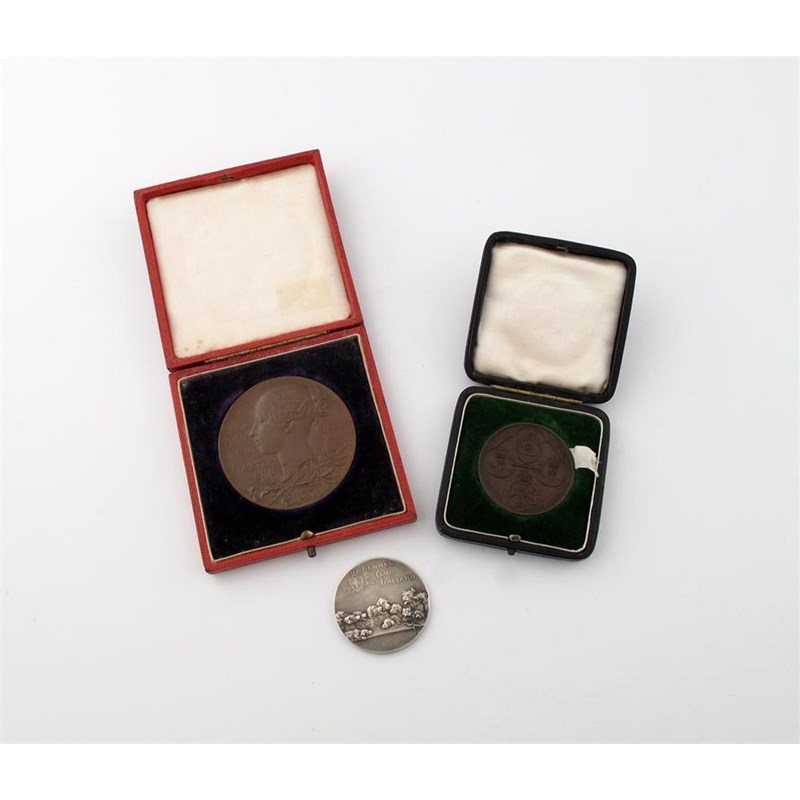 Victoria, Diamond Jubilee, 1897, official bronze medal, in case; Light Division, Centenary 1908, copper medal, 38mm, in case of issue; Kennel Club Italiano, silver medal, c. 1900, a group of 12 dogs, 37mm. This very fine, others better. (3)