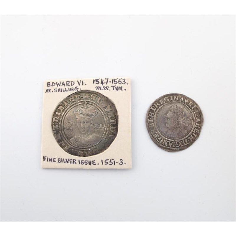 Edward VI, Shilling, mm tun (S 2482); and a Sixpence of Elizabeth I, 1561. Fair to fine. (2)