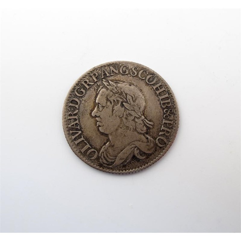 Oliver Cromwell, Shilling, 1658, by Thomas Simon, laureate, draped bust left, rev crowned shield of the Protectorate (ESC 1005; S.3228). Good fine.
