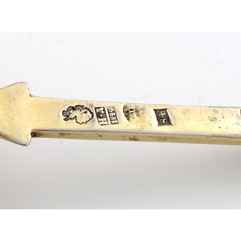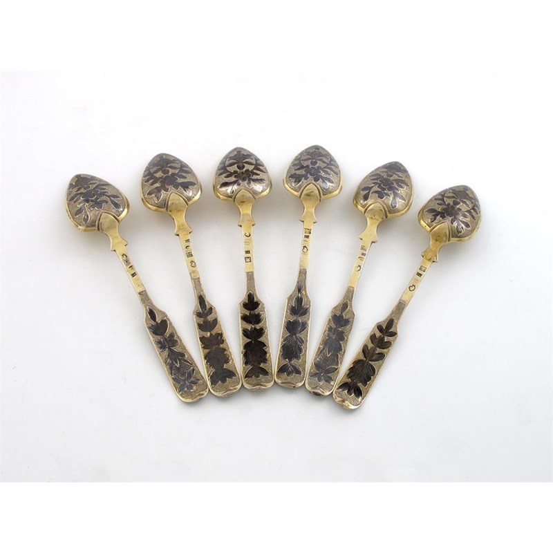 A set of six 19th century Russian silver-gilt and niello work dessert spoons,