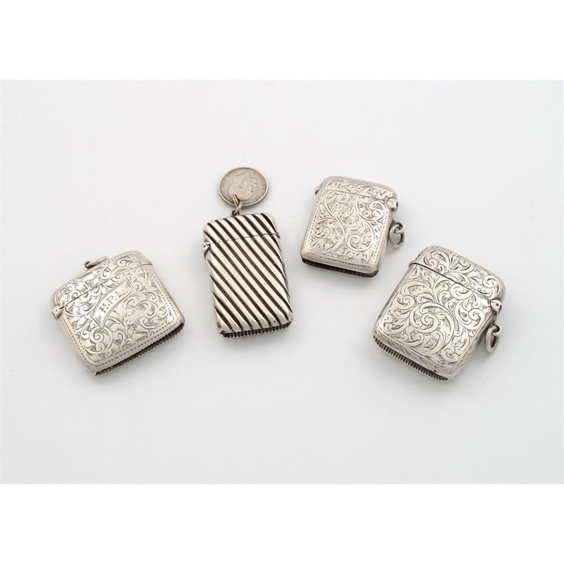 comprising one of rectangular form, fluted decoration, Birmingham 1888, plus three with engraved foliate decoration, approx. weight 2.5oz. (4)