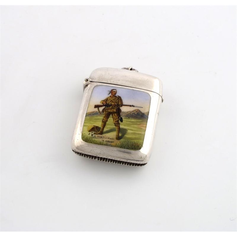 Boer War interest, a late-Victorian silver and enamel vesta case,