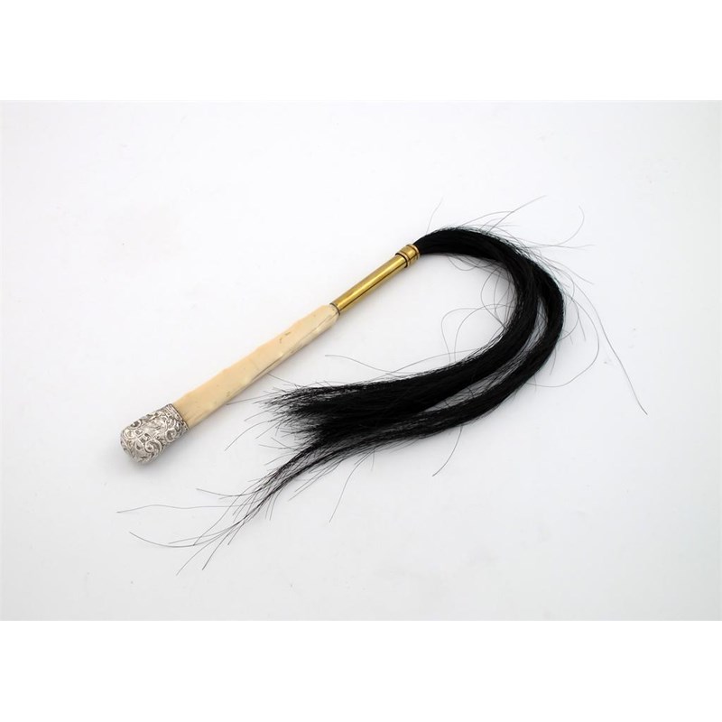 A late-Victorian silver mounted ivory handled fly whisk,