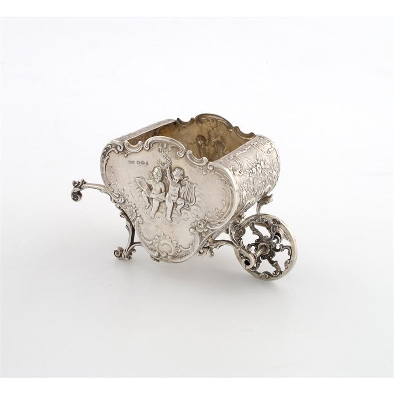embossed with cherubs and foliate scroll decoration, the wheel with scroll spokes, scroll handles, length 12cm, approx. weight 4oz.
