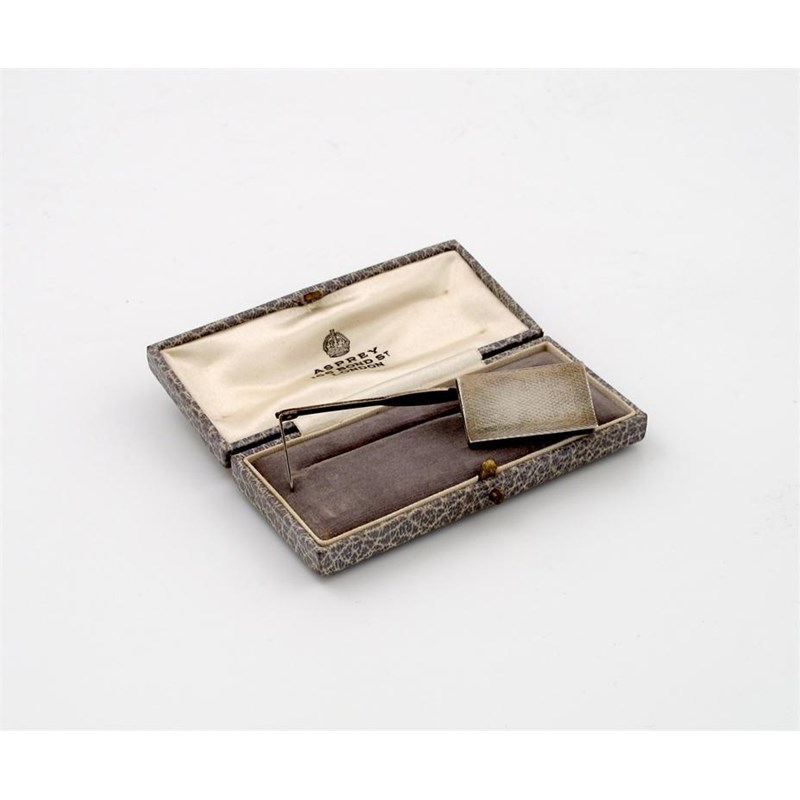 rectangular engine-turned form, sprung hinged arm, in original fitted case, length 7cm.